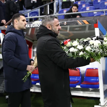 Πριν τη σέντρα του αγώνα Λιόν - ΠΑΟΚ αντιπροσωπεία οπαδών της γαλλικής ομάδας παρέδωσε στεφάνι στην ΠΑΕ στη μνήμη των αδικοχαμένων φίλων του Δικεφάλου του Βορρά.