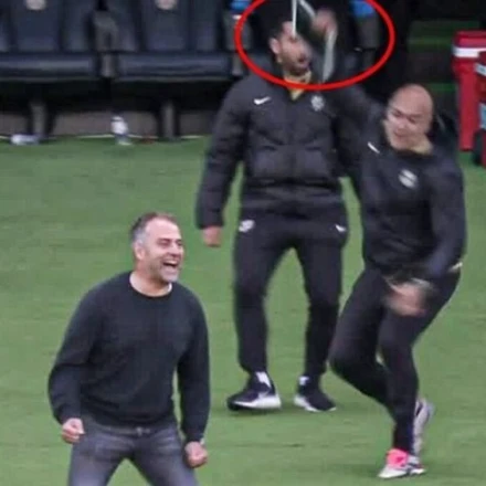 Και τόσο μεγάλη χαρά είχε ένας από τους βοηθούς του Φλικ, βλέποντας τον διαιτητή να δείχνει την εσχάτη των ποινών, που πάνω στους πανηγυρισμούς πέταξε κάτω και έσπασε ένα τάμπλετ που κρατούσε, όσο ήταν καθισμένο στον πάγκο.