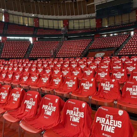 Στο πλαίσιο αυτό οι εξέδρες έχουν μπει ήδη στο κλίμα του μεγάλου αγώνα. Αυτό γιατί σε κάθε κάθισμα υπάρχει ένα κόκκινο t-shirt με το μήνυμα «It's Piraeus Time», σε μια κίνηση που έρχεται να ομορφύνει τον χώρο.