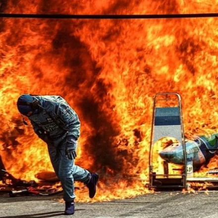 Σε pit stop που πραγματοποίησε εν ώρα αγώνα στον 15ο γύρο, βενζίνη ψεκάστηκε πάνω στο κράνος του και μέσα σε λίγα δευτερόλεπτα, το μονοθέσιο κι ο ίδιος εκτυλίχθηκαν στις φλόγες. Επικράτησε πανικός στα pits και άπαντες έσπευσαν να προσφέρουν βοήθεια.