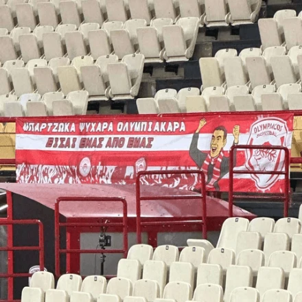 Ένα τρομερό πανό με πρωταγωνιστή τον Γιώργο Μπαρτζώκα έχει τοποθετηθεί στις κερκίδες του ΣΕΦ.
