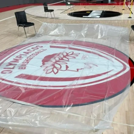 Την ίδια ώρα που η ομάδα βρίσκεται στη Μαδρίτη για το ματς με τη Ρεάλ στο πλαίσιο της δεύτερης αγωνιστικής της Euroleague, πίσω στη βάση των «ερυθρολεύκων» έχουν βγει στον αγωνιστικό χώρο, κουβάδες και νάιλον για να προστατευθεί το παρκέ.