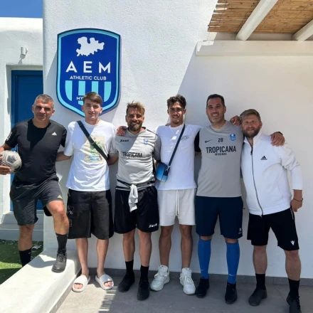 Μάλιστα, την Κυριακή οι δύο νεαροί άσοι έδωσαν το παρών στο Δημοτικό Στάδιο του Κόρφου, στον φιλικό αγώνα των μπαμπάδων των τμημάτων Κ8 και Κ10 που διοργανώνει η ΑΕ Μυκόνου.