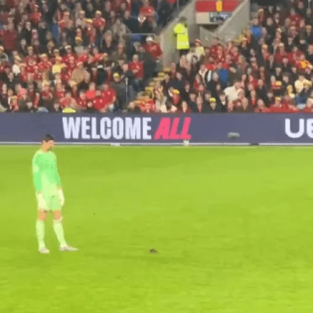 Σε ένα σπάνιο σκηνικό στην αναμέτρηση της Ουαλίας με το Βέλγιο, ο Τιμπό Κουρτουά προσπάθησε να πιάσει ένα ποντίκι και να το βγάλει εκτός γηπέδου.