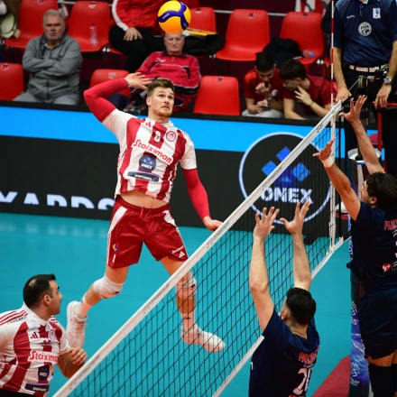 Από την πλευρά του, ο Ολυμπιακός επέστρεψε στις επιτυχίες, επικρατώντας με 3-1 σετ του Πανιώνιου. Με MVP τον Κριστιάν Φρομ και με τους Πέρριν και Ατανασίγιεβιτς σε υψηλά ποσοστά στην επίθεση, οι «ερυθρόλευκοι» πανηγύρισαν την 6η νίκη τους στο πρωτάθλημα και ανέβηκαν στην 3η θέση της βαθμολογίας με 20 βαθμούς. Η επίθεσή τους κινήθηκε στο 59%, με τον Πέρριν να σημειώνει 21 πόντους και τους Φρομ και Ατανασίγιεβιτς να προσθέτουν από 18.