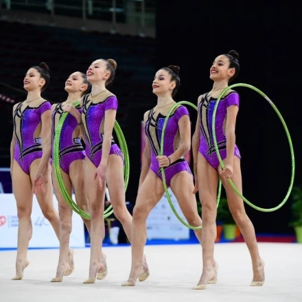 Η ελληνική ομάδα (Ιοκάστη Κηρύκου, Μαρία Μανάτου, Νικόλ Σελμανάι, Κατερίνα Σπανουδάκη, Εστέλλα Φέρρα, Αντωνία Παπαδοπούλου) βαθμολογήθηκε με 21,450, επίδοση που σε συνδυασμό με την συγκομιδή της πρεμιέρας στα 5 ζεύγη κορύνες (22,100 β) την έφερε στην κορυφή του σύνθετου αγώνα με τελικό άθροισμα 43,550 βαθμούς, μπροστά από τις αντίστοιχες ομάδες της Εσθονίας (42,100 β) και της Βουλγαρίας (41,400 β).