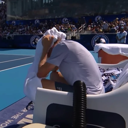 Ο Νο.1 του κόσμου ενημέρωσε γιατρό και διαιτητή για την κατάστασή του, ενώ στη συνέχεια μίλησε και στον Αλκαράθ καθώς εγκατέλειψε τον αγώνα μετά από ιατρικό time out στο έκτο game του πρώτου σετ.