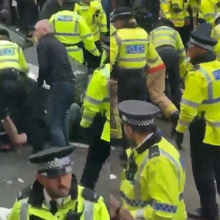 Ενα βίντεο που κυκλοφορεί στο Χ δείχνει τη στιγμή όπου άνθρωποι της αγγλικής αστυνομίας προσπαθούν να απεγκλωβίσουν έναν οπαδό.