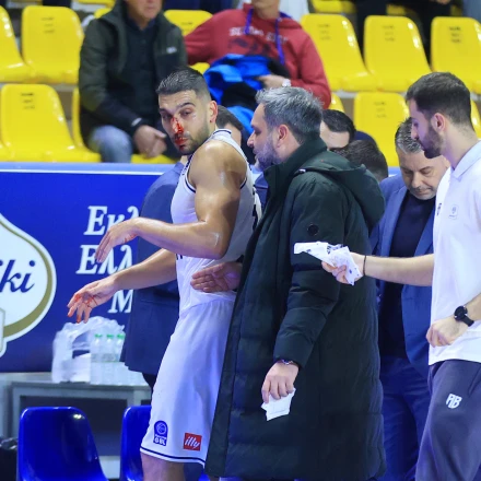 Ο Έλληνας παίκτης, κατά τη διάρκεια της πρώτης περιόδου της αναμέτρησης, προσπάθησε να ανακόψει τον Μαξίμ Σάλας ο οποίος έφευγε σε αιφνιδιασμό, χτυπώντας τη μύτη του πολύ άσχημα. Το πρόσωπό του, γέμισε αίματα.