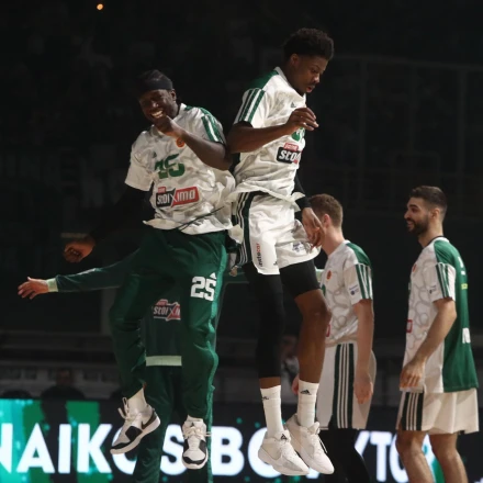 Χαλαροί, ικανοποιημένοι και... εξουθενωμένοι από το τρέξιμο και την πίεση, οι δύο πρώην συμπαίκτες φωτογραφίζονται, αλλά δεν είναι... εντελώς μόνοι. Στον χώρο γίνεται αντιληπτή μέσω ενός κλιπ και η παρουσία ενός ακόμα αθλητή του Παναθηναϊκού, του Ομέρ Γιούρτσεβεν.