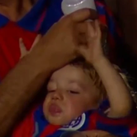 Στις κερκίδες του γηπέδου της Σαν Λορένζο, ένας κύριος παρακολουθούσε το ματς, έχοντας στην αγκαλιά του ένα μωρό, το οποίο τάιζε γάλα με το μπιμπερό του. Όμως, το θέαμα στο χορτάρι τον είχε απορροφήσει για τα καλά. Ο μικρός, που φορούσε μάλιστα και τη φανέλα της ομάδας, είχε χορτάσει.