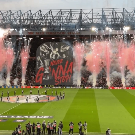 Με τη πρόκριση να παίζεται ακόμα ανοικτά, ο κόσμος των Κόκκινων Διαβόλων, υποδέχθηκε την ομάδα με ένα πανό στη κεντρική κερκίδα του γηπέδου, υπενθυμίζοντας τα παλιά ευρωπαϊκά μεγαλεία του συλλόγου.