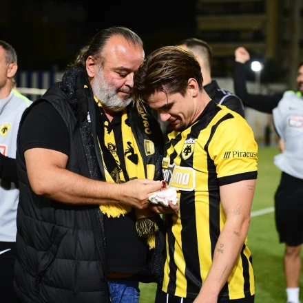 Στο φινάλε του αγώνα ο Μάριος Ηλιόπουλος κατέβηκε στον αγωνιστικό χώρο για να αγκαλιάσει όλους τους παίκτες και τον Μάρκο Νίκολιτς, όπως κάνει σχεδόν σε κάθε ματς, αλλά αυτή τη φορά είχε και ένα χέρι με αίματα.