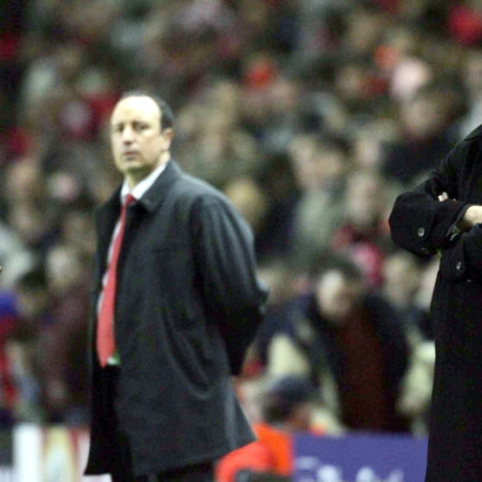 Ράφα Μπενίτεθ και Ντούσαν Μπάγεβιτς στο Λίβερπουλ-Ολυμπιακός το 2004 / Πηγή: Eurokinissi