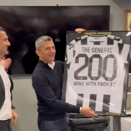 Οι ποδοσφαιριστές, αλλά και άνθρωποι από την ομάδα, έκαναν έκπληξη στον προπονητή των «ασπρόμαυρων», προσφέροντας του μια φανέλα με τον αριθμό 200, αλλά και μία μπάλα υπογεγραμμένη από όλους τους παίκτες.
