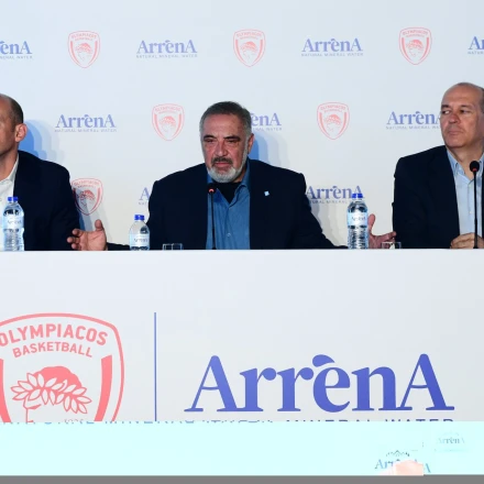 Η αγωνιστικότητά σας και η καθαρή σας νοοτροπία ταιριάζουν με το καθαρό νερό “ΑρρένΑ”. Το νερό των πρωταθλητών. Η πηγή μας είναι αστείρευτη, είμαστε στην κορυφή του Γράμμου, στην ακριτική Ελλάδα και στον Ολυμπιακό ταιριάζει μόνο η κορυφή.