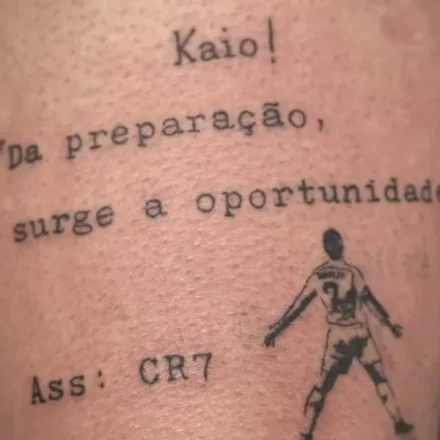 Πώς μπορεί κάποιος να δείξει την αγάπη του για τον Κριστιάνο Ρονάλντο; Με ένα τατουάζ που θα μείνει για πάντα χαραγμένο στο κορμί του. Αυτό σκέφτηκε ο επιθετικός της Κρουζέιρο, Κάιο Χόρχε, ο οποίος έβαλε μελάνι στο αριστερό του πόδι μια φράση που του είπε το είδωλό του, ο Πορτογάλος αστέρας της Αλ Νασρ.