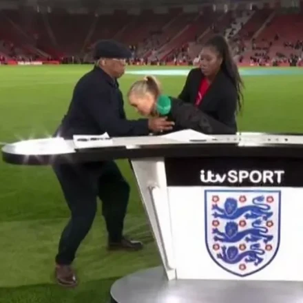 Η δημοφιλής σταρ βρισκόταν στο ITV4 μαζί με τον παλαίμαχο φορ της Άρσεναλ, Ίαν Ράιτ, και την συνάδελφό της, Ανίτα Ασάντε, όταν συνέβη το περιστατικό.